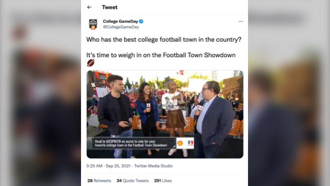 During the week of 9/25 (Texas vs. Texas Tech), ABC drew in the largest average audience of any CFB network, resulting in ABC’s best 4-week start to a season since 2017