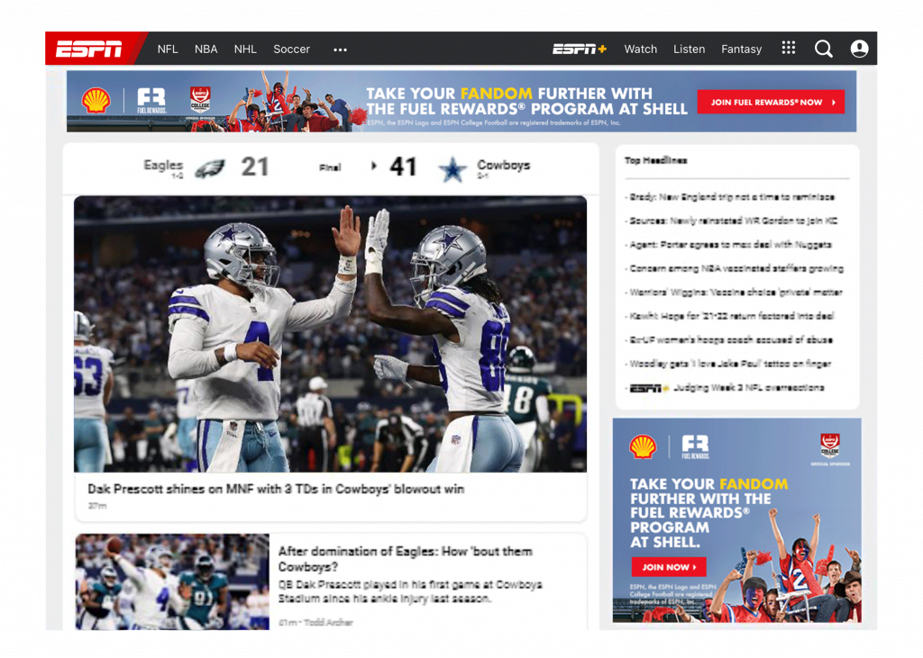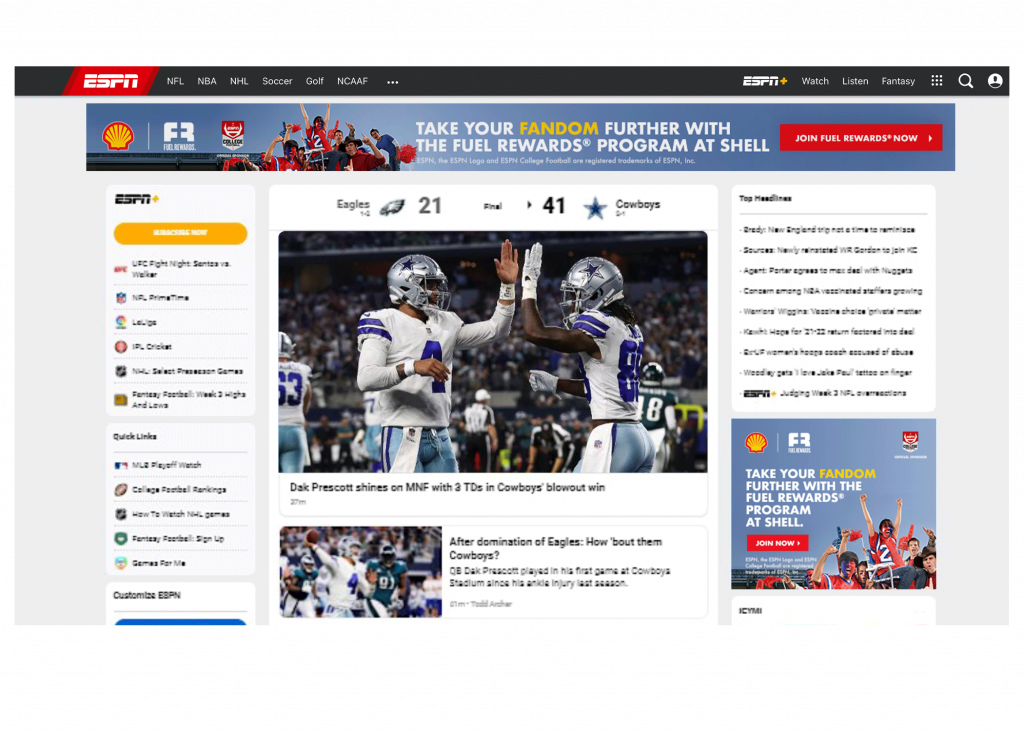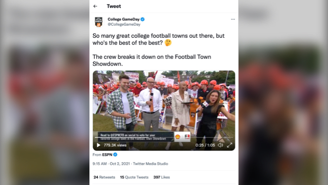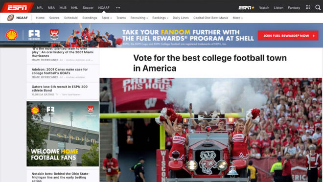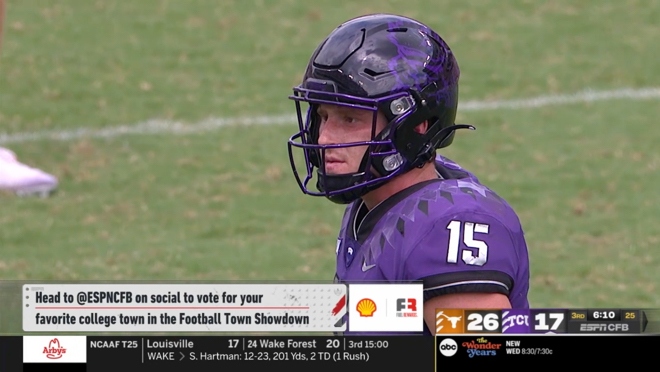 Among P18-49, ESPN and ABC owned 6 of the Top 10 CFB games during the week of 10/2, including the Texas vs TCU game on ABC
